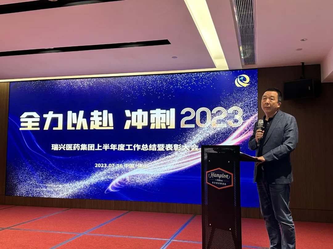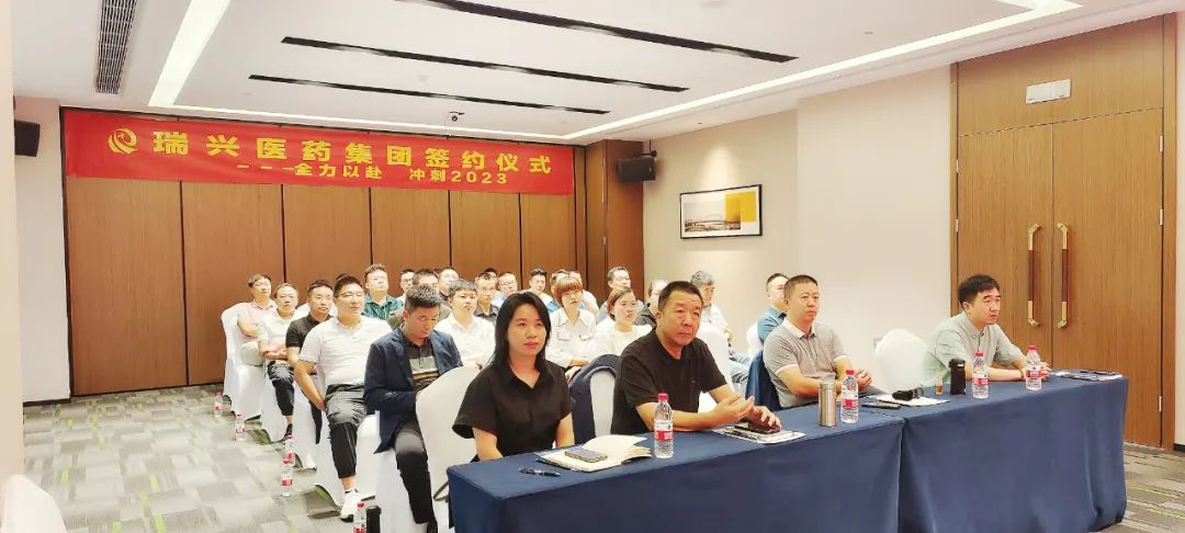 2023年7月16日,瑞興醫(yī)藥集團(tuán)營(yíng)銷中心2023年任務(wù)責(zé)任狀簽約儀式,半年度工作總結(jié)大會(huì)在公司總部隆重舉行。黃凌云董事長(zhǎng)、欒廣根總經(jīng)理、周益副總經(jīng)理、營(yíng)銷中心總經(jīng)理陳廣明攜總部全體人員共同參會(huì)。
