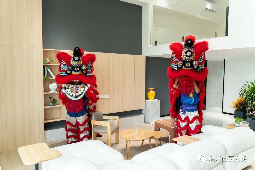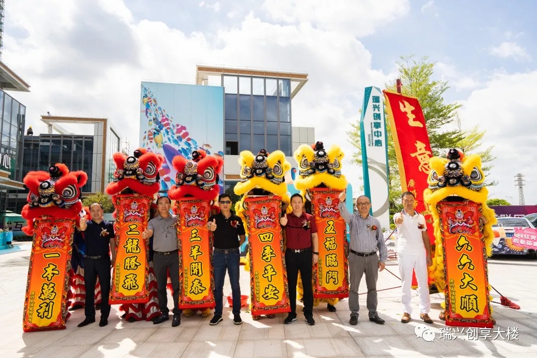 廣東瑞興醫(yī)藥股份有限公司董事長(zhǎng)黃凌云先生與一眾嘉賓領(lǐng)導(dǎo)為【瑞興創(chuàng)享中心】開(kāi)放典禮進(jìn)行剪彩儀式,并在眾多賓客矚目下,6位領(lǐng)導(dǎo)上前為6只舞動(dòng)的瑞獅點(diǎn)睛。