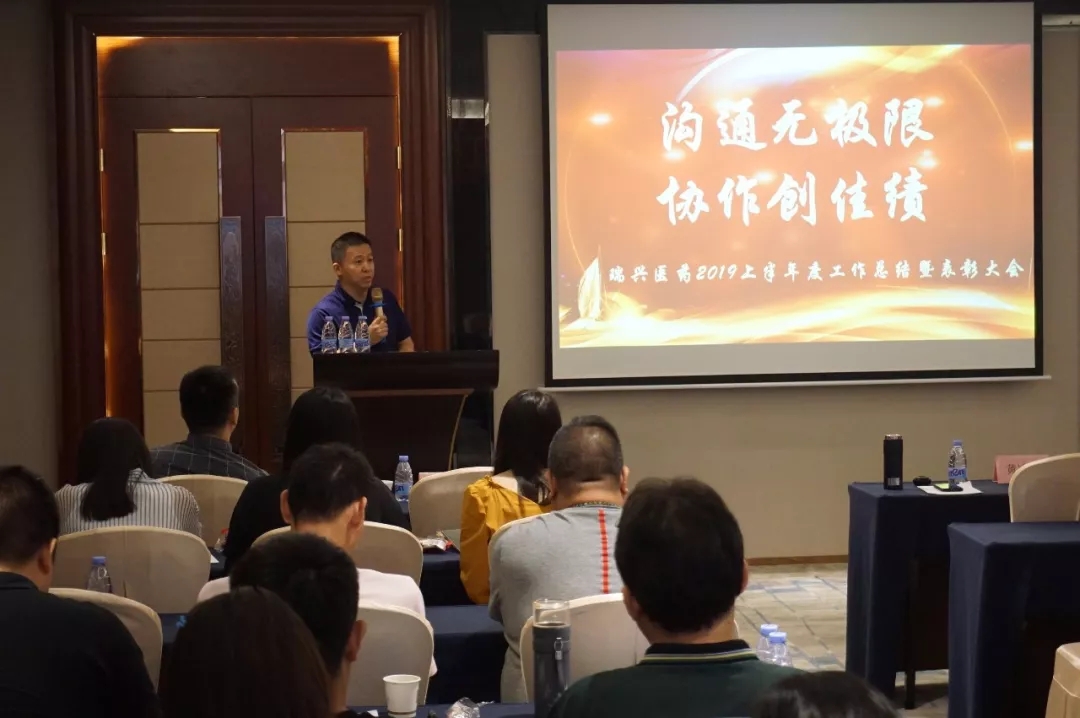 3、欒廣根總經(jīng)理在聽(tīng)取了各部門(mén)的工作匯報(bào)后進(jìn)行了點(diǎn)評(píng)及總結(jié)。點(diǎn)評(píng):大家期待的瑞興創(chuàng)享中心正在緊鑼密鼓的建設(shè)中,相信我們很快就可以在自己的酒店享有開(kāi)會(huì)、用餐、住宿一條龍服務(wù)。本次會(huì)議的主題“溝通無(wú)極限 協(xié)作創(chuàng)佳績(jī)”極具內(nèi)涵。首先,本年度是公司的溝通協(xié)作年,開(kāi)年培訓(xùn)、讀書(shū)分享會(huì)及拓展等一系列的活動(dòng)都是圍繞著主題展開(kāi),溝通無(wú)極限是指無(wú)論部門(mén)之間、同事之間、客戶之間的溝通都要“隨時(shí)、隨地,隨人、隨事”,希望每個(gè)人都能“從我做起、從現(xiàn)在做起、從點(diǎn)滴做起”,另外,上半年公司如期完成了重點(diǎn)考核指標(biāo)是各部門(mén)通力協(xié)作,每位員工共同努力的結(jié)果。點(diǎn)評(píng)過(guò)后欒總對(duì)上半年的工作從“產(chǎn)品、供應(yīng)、模式”三方面進(jìn)行了深入的總結(jié)并指出了問(wèn)題及應(yīng)對(duì)措施,希望各部門(mén)、各位員工下半年能“立足崗位,奮力拼搏;正視差距,迎頭趕上”,通過(guò)溝通協(xié)作主題年各項(xiàng)活動(dòng)的開(kāi)展,及發(fā)揚(yáng)“花時(shí)間、花心思、花力氣”的三花精神,確保完成年度目標(biāo),切實(shí)減少誤會(huì),進(jìn)一步增進(jìn)信任,增強(qiáng)凝聚力,提高執(zhí)行力。