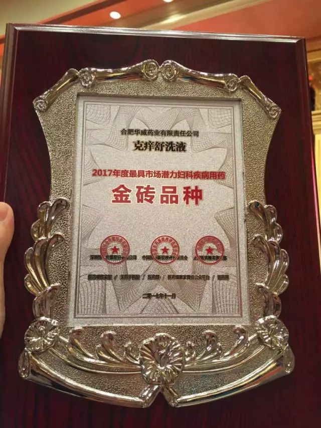 11月27日,由合肥華威藥業(yè)生產(chǎn)的婦科產(chǎn)品【克癢舒洗液】榮獲2017年度最具市場(chǎng)潛力婦科疾病用藥金磚品種獎(jiǎng)!
